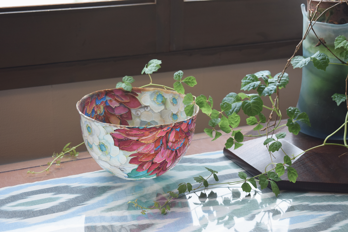 金属の上にこういう加色をする技術っていうのは、他のものではないそういう美しさを出せる一つの素晴らしい技術だと思っています。しかもその技術は紀元前から続いてるんですよ。紀元前3世紀に作られて、今も続いているということは、それだけシンプルなものなんです。七宝が世界中に広がっているというのは、いかに皆さんが作りやすい、そういう基本的な材料でできてるからやと思うんです。