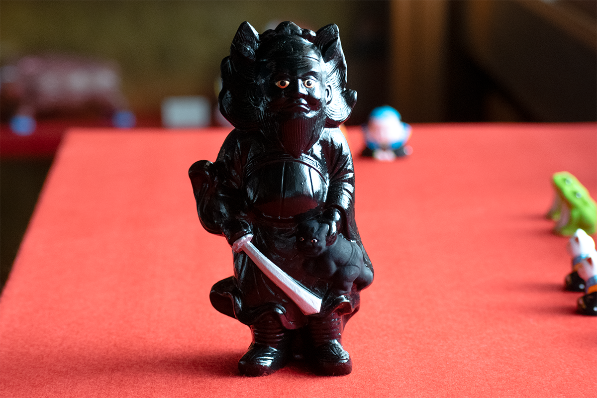 新しいのはちょっと前に作ったペンギンぐらいかな。伏見人形っていうのはそもそも当時の流行のものをモチーフにしてるんでね。歌舞伎のもの(人形)でも、今では昔の風習みたいなものになってますけど、当時の流行、最先端と言われるものを人形にしたりしてるんで。例えばペンギンの人形で言うと、京都初の水族館 [3] ができた。当時の感覚で言うと絶対に水族館に関係するものを人形にしてるだろうな、っていうなことで、僕はその中でペンギンを選んで人形にしたんですけど。僕は新しいことをしてるわけではなく、当時の、その時代の最先端のものを作るっていうので、伏見人形の流れそのままの作業なんですよすね。